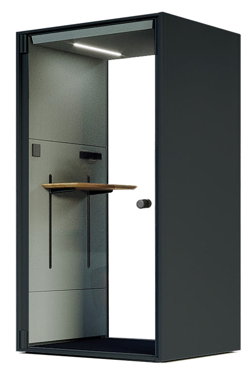 BELCEL 26 / PHONE BOOTH 26 Specificaties:- Buitenzijde en frame: Zwart (Black)- Binnenzijde: Grijs (Gray) - In hoogte verstelbaar tafelblad 800x360...
