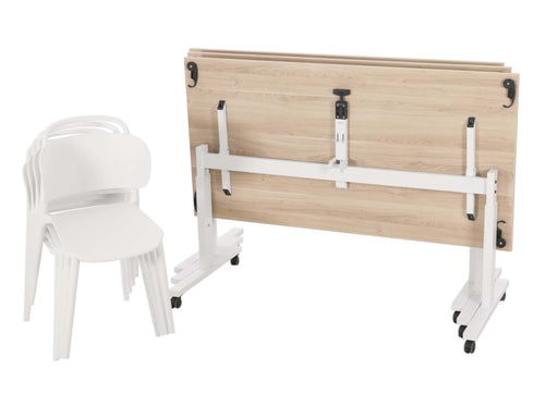 De TUBE tafel is inklapbaar, verrijdbaar en in hoogte verstelbaar. Met het press-and-pull systeem kunt u het blad inklappen door er licht op te duw...